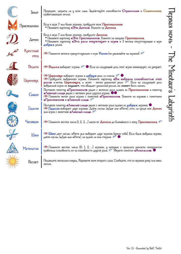 - Когда добрый игрок должен получить информацию по своей способности, он должен выбрать Рассказчика, который ее выдаст.